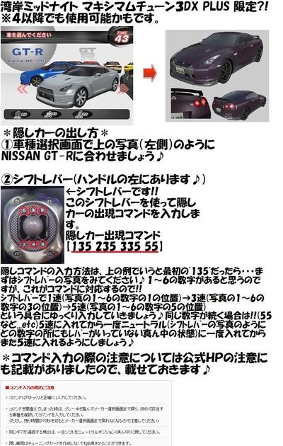 日本のみで稼働していた「湾岸マキシ6R」の車種なども入って 「湾岸マキシ6RR」として稼働します! 言語に対応したサイトで 情報公開していきますので、世界のプレイヤーの皆様お楽しみにお待ち下さい! Hello everyone, this is Yakata湾岸ミッドナイト Maximum Tune・2・3・3DX・3DX Plus・4・5・5DX・5DX Plus・6・6R・6RR 19年2月8日に、湾岸ナビゲーターでシリーズ未登場車の47車種の候補から上位2車種が、『6R』に登場する追加車種投票イベントが近日開催されることがオフィシャルから告知され「湾岸ミッドナイトmaximumtune3 dx plus」ソフトバージョンアップに 関するお知らせ 「湾岸ミッドナイトmaximum tune3 dx plus」プレイ時のカード確認のお願い 「湾岸ミッドナイトマキシマムチューン3DX plus」チューニングカードデータの
